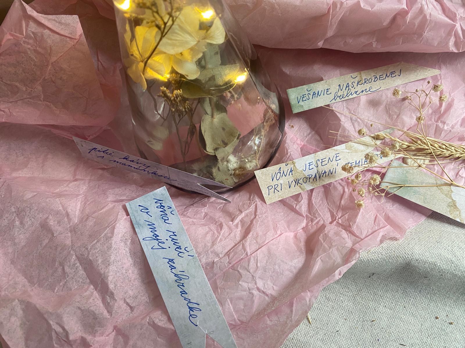 ARTE sada "Posvieťme si na krásne chvíle" je zameraná na tvorbu svojich vlastných "zdrojov" - toho, čo mi robí v živote radosť a čo ma napĺňa. Fľaštičku napĺňam situáciami, momentami, spomienkami, zážitkami, ktoré mi spôsobujú radosť. Lístočky s nápismi umiestňujeme do fľaštičky, ktorú zazátkujeme, aby nám tie chvíle neunikli. V čase núdze o dobré zážitky si mám možnosť svoje "dobré chvíle" čítať a pripomínať si ich. Tento produkt je vhodný na individuálnu arteterapiu - obsahom balenia je jedna fľaštička.